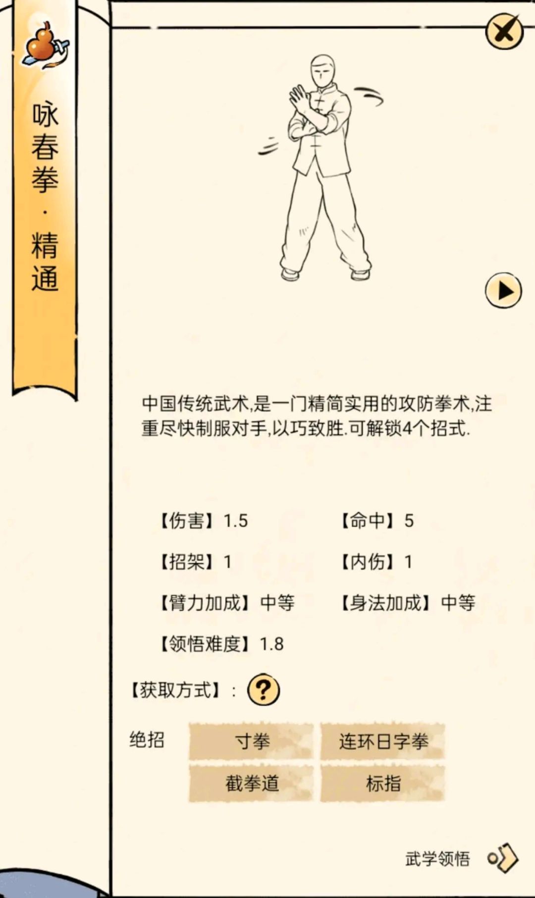 咏春拳领悟面板