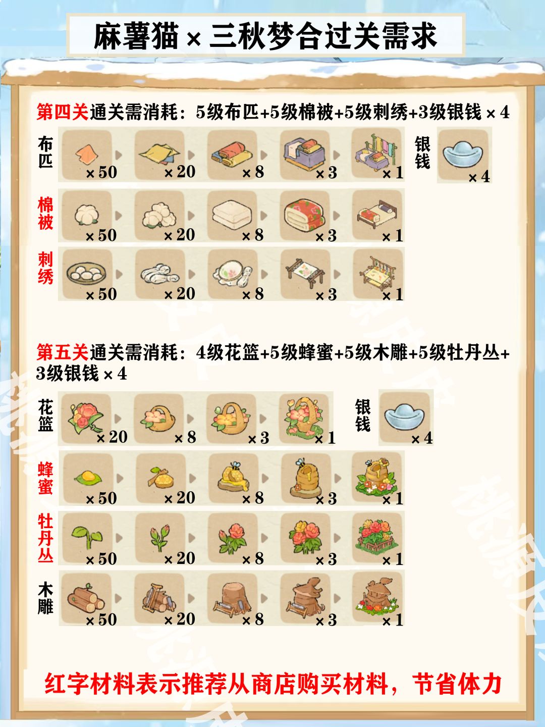 平均下来1玎当可节约1.5点体力,红字材料表示推荐从商店购买节约体力。