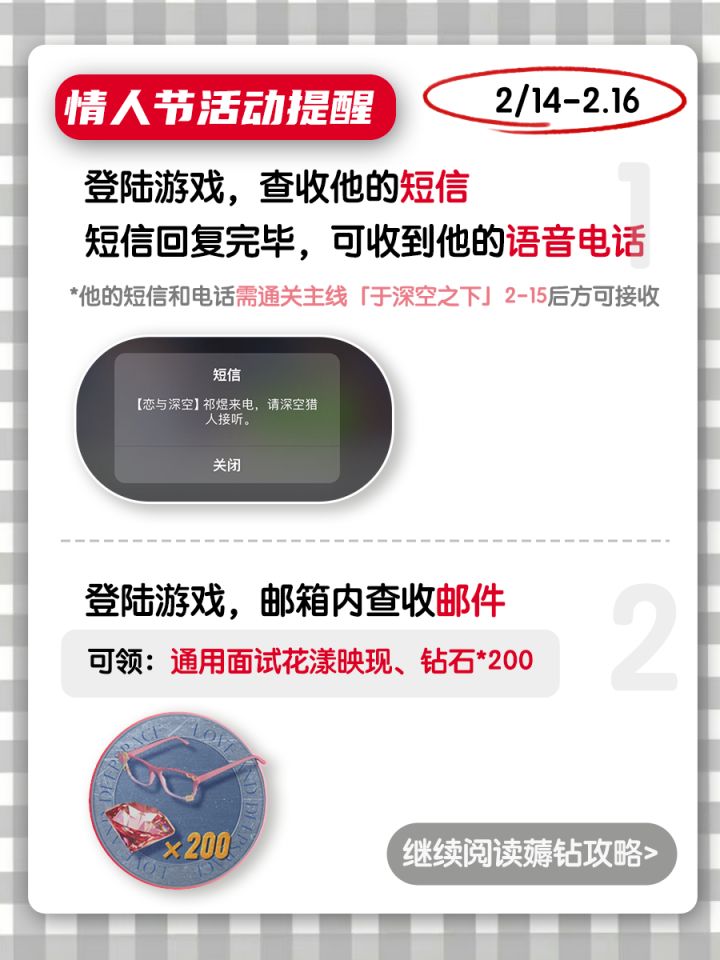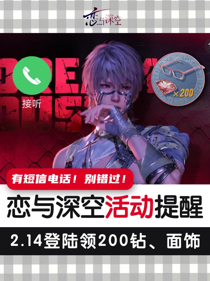 恋与深空明天有电话和200钻❗️别错过