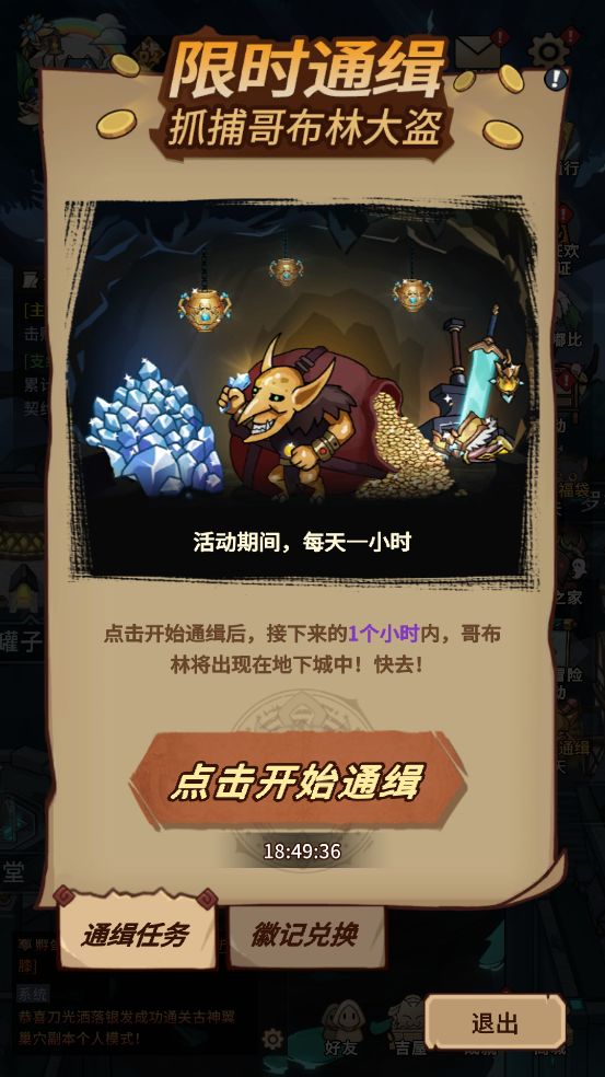 进入方式:主城侧栏活动界面-哥布林通缉深渊地下城限时通缉哥布林,击败哥布林大盗获取活动材料,换取随机巨心等奖励