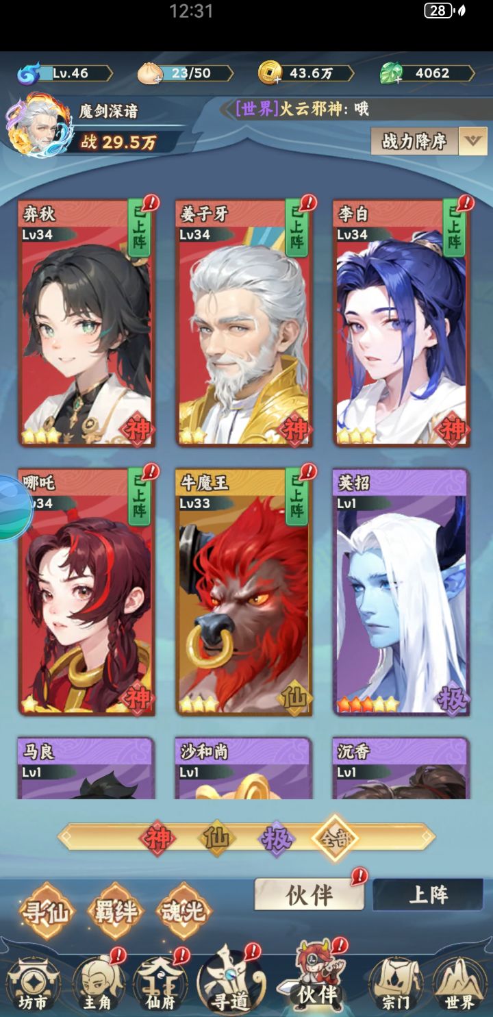 单体青鸾,比较容易升星,群体牛魔王,控制雷震子,这几个都非常适合非人玩家。