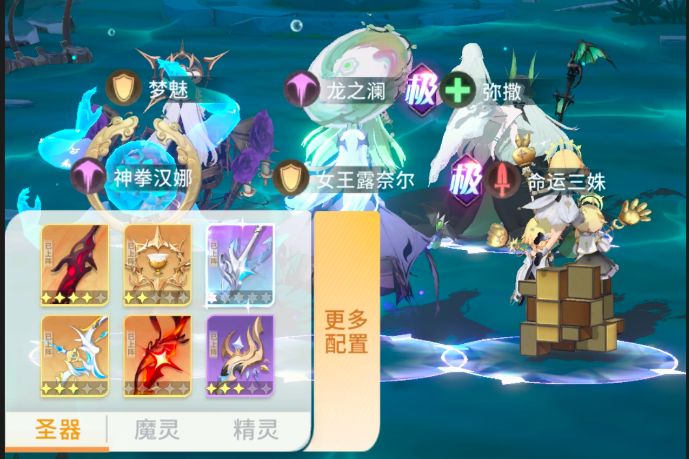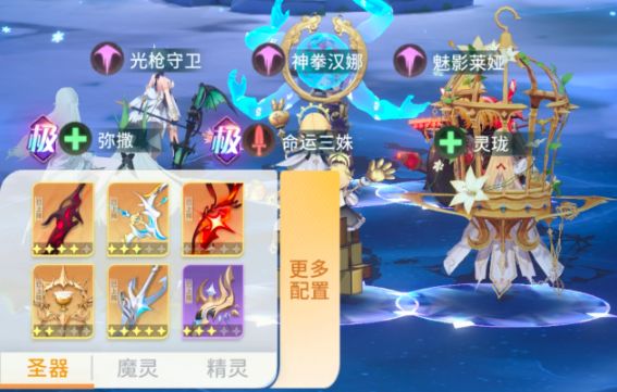 额外配置主要有圣器、魔灵、精灵、装备、符文、专武、星魂、船舱。