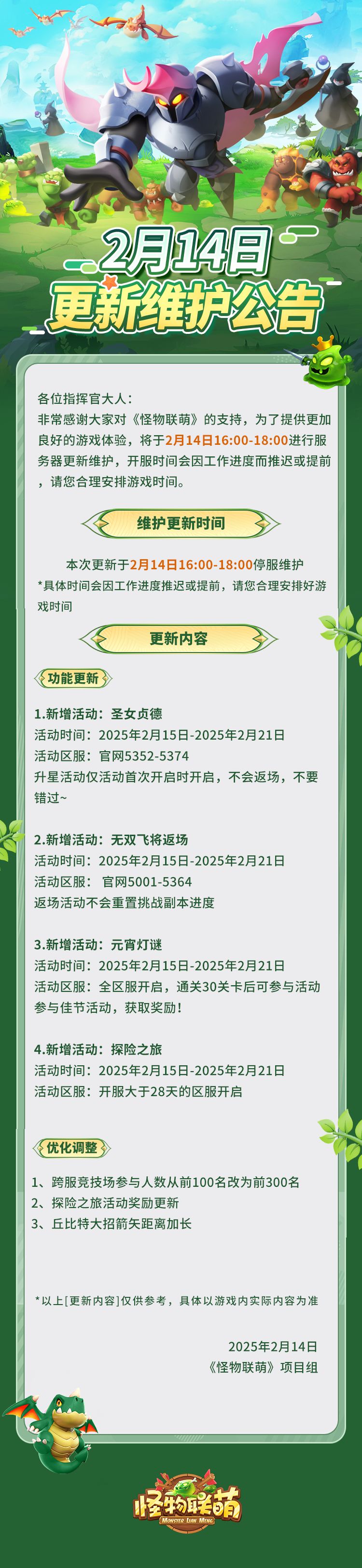 2月14日更新维护公告