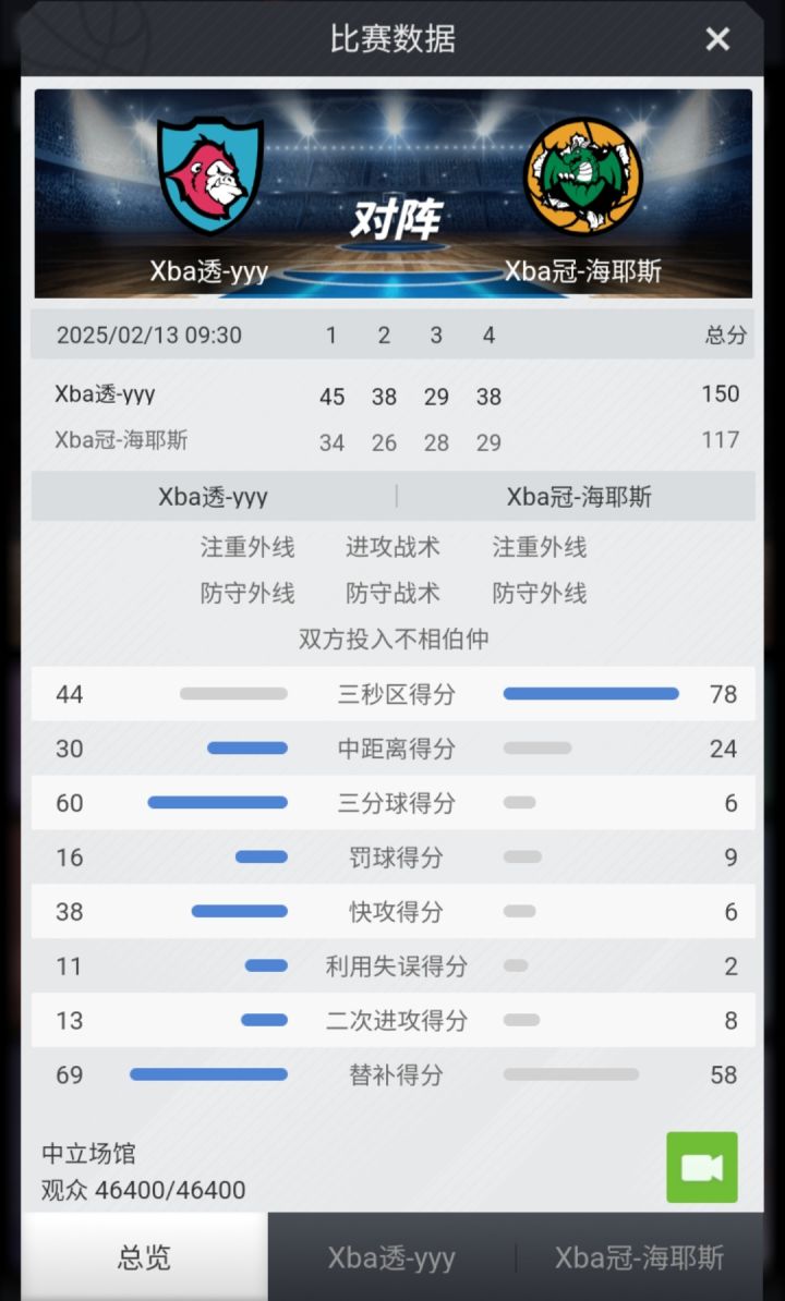 赛果战报:【冯选襄59分统治比赛 ,萧承载41分火力全开】yyy以150比117大胜海耶斯。让人意外的是,赛前,双方支持率为7比28 ,yyy仅获得20%支持率。
