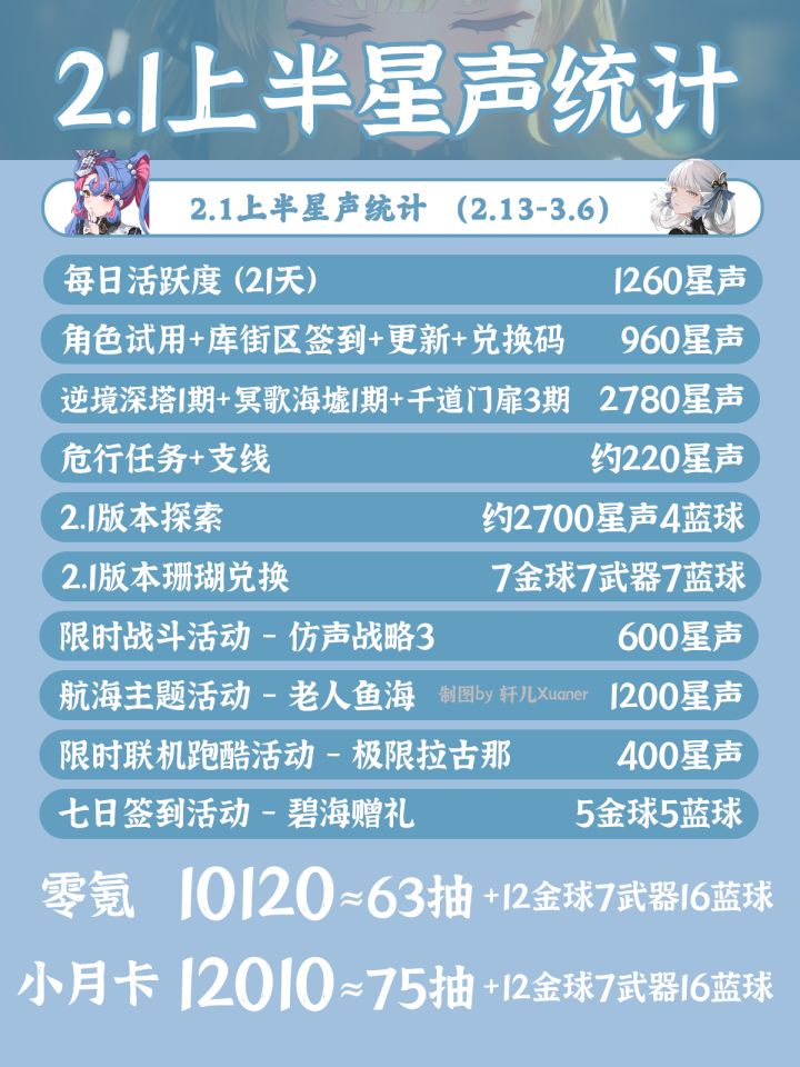 各位潮友情人节快乐!本篇攻略内容为大家总结鸣潮2.1版本上半活动和可获得的星声~