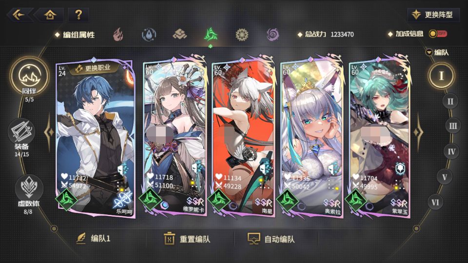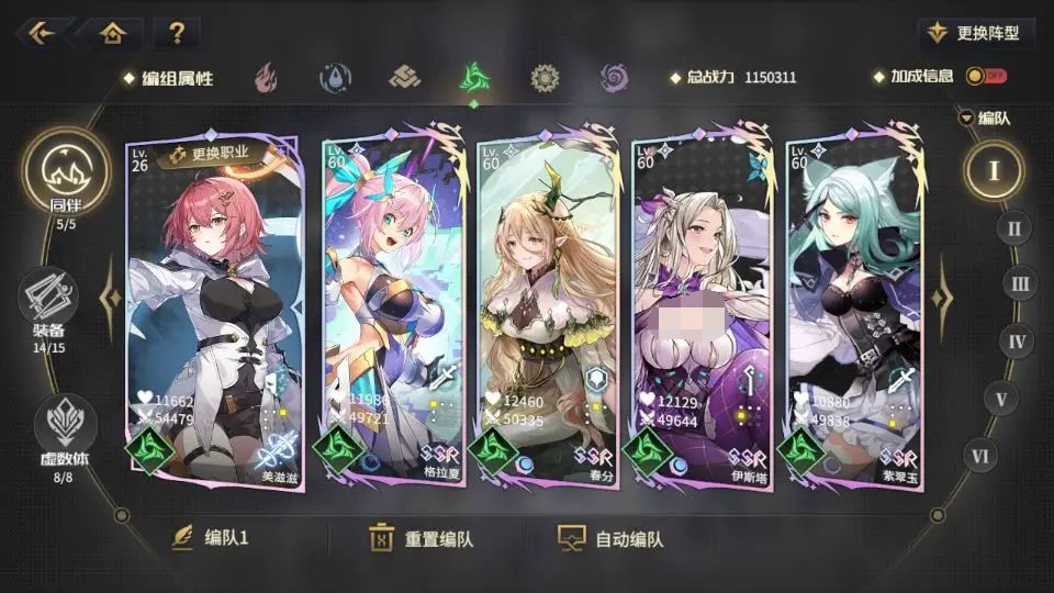 前排角色使用格拉夏、春分、盖乌斯、比比安。