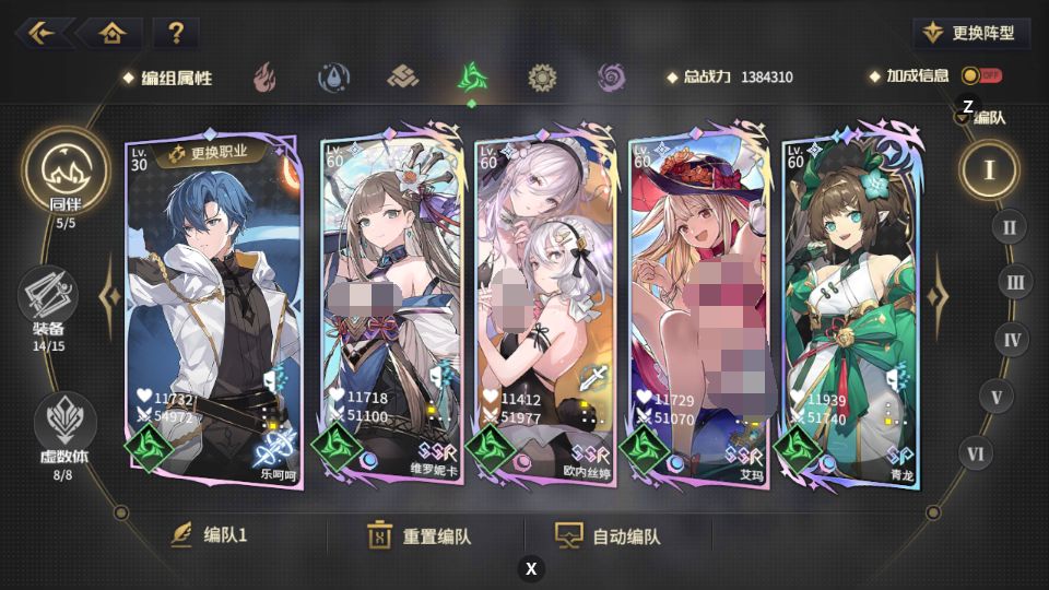 前排角色使用维罗妮卡(刚需5调)、欧内丝婷(刚需4调)、艾玛、青龙(刚需5调)。