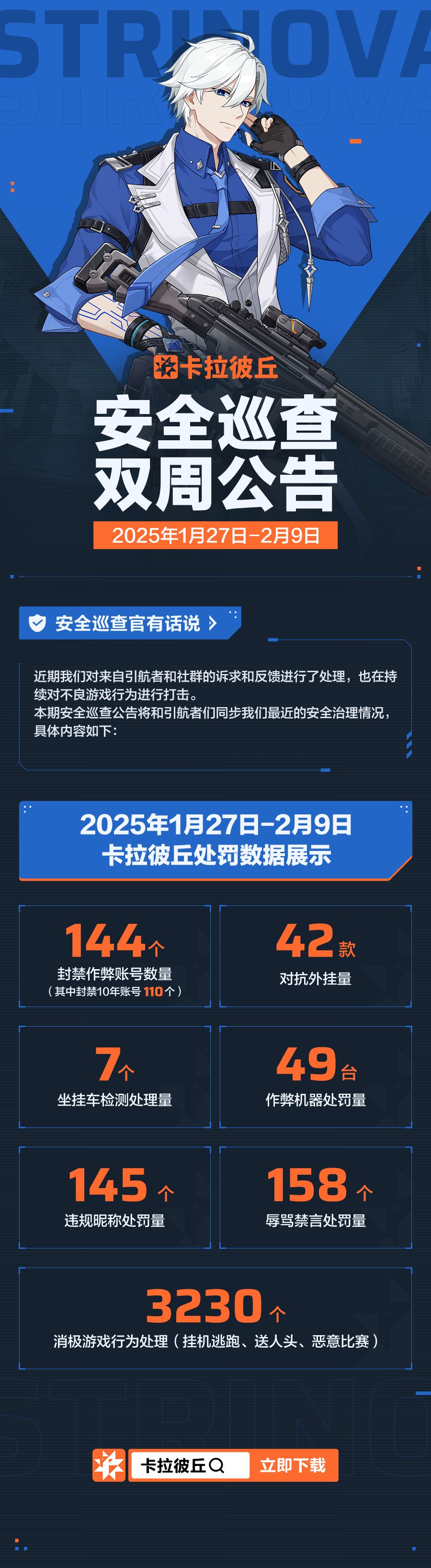 欢迎引航者收看2月14日的安全巡查公告,近期我们对来自引航者和社群的诉求和反馈进行了处理,也在持续对不良游戏行为进行打击。本期安全巡查公告将和引航者们同步我们最近的安全治理情况,具体内容如下: