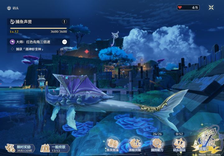 终于把这个破捕鱼活动肝完了,商店剩一些物资不兑也罢,贡多拉难开的要死,后面不会再碰了。一个无聊玩法换着皮出也真是费心了。ps:1、大家偶然捉到的异象鱼不要卖,先放捞网里,后面钱够多了去刷新任务,刷到对应任务去交付,这要比你根据任务去现捕省事多了(也可以去幽灵水母多的危险水域,撒料钓随机异象鱼,再回来刷任务)。2、部分任务需要开船时与岸边交互(给npc鱼),交互后会立刻过剧情并把你传送上岸,过完记得去找船,要是在港口章鱼重开,你捞网和船舱的鱼就都没了。