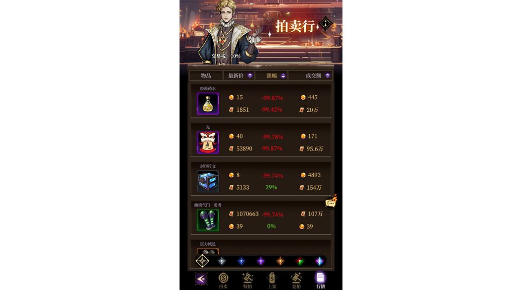 3、玩家售出道具后最终收到的货币会扣除当前交易税;例:道具以10烛火币成交,当前交易税=10%,玩家最终收到10-1=9烛火币。