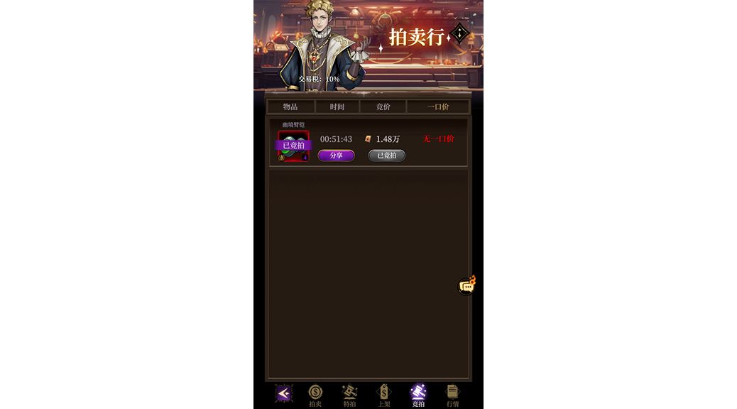 3、部分道具有一口价设定,玩家选择一口价交易后可直接结束拍卖获得道具。
