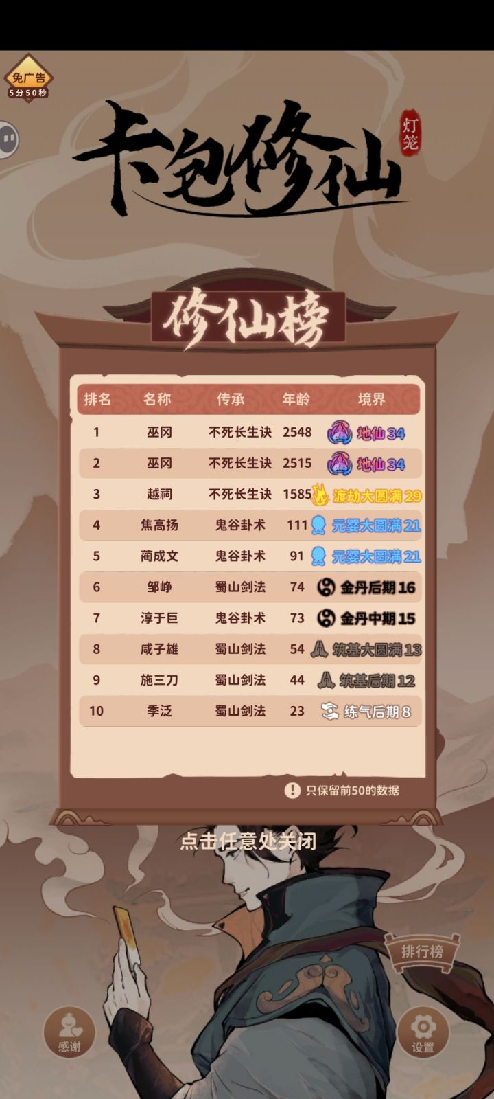 长生最简单的方法,弄三个锻体术功法,开个连点器一直点挖矿,然后进商店买突破丹和高级锻体术就行,用不完的钱,锻体术挖矿就有经验,除了商店其他卡包一律不开,不打怪