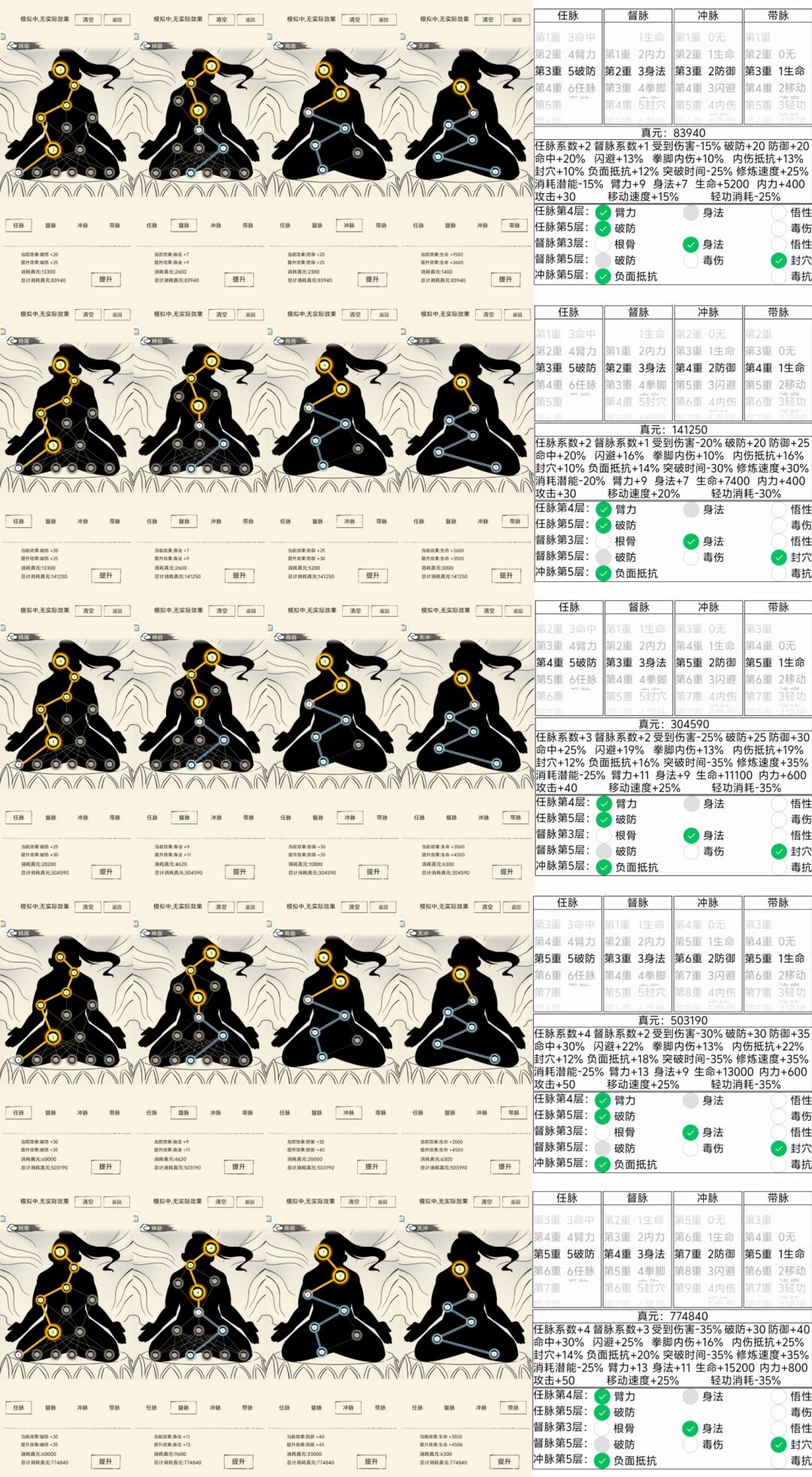 作为一门以吸血消耗为主的武学,自身一定要拥有足够的防御支撑回合,不能被秒了,因此应当主冲脉防御,任督二脉应当主任脉,具体点脉图如下: