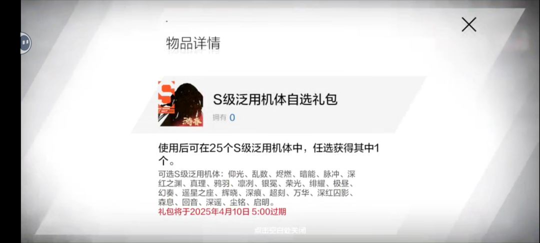 s角色自选礼包,四月份过期,可以自选角色,角色推荐启明,深红等