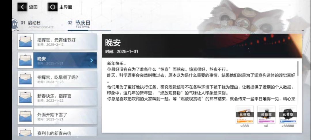 上线领取888,跟8关体力药,今天是最后一天时间了,注意,上次周年庆的时候是二千,都是限时的注意一下
