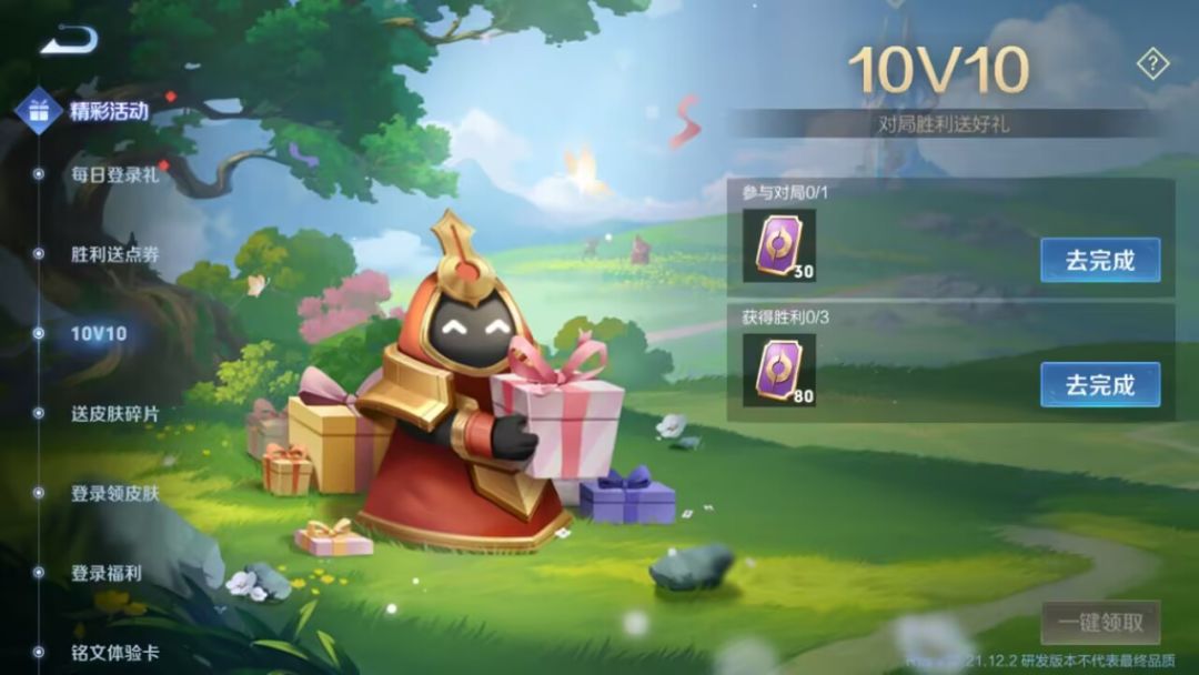每日参与10V10对局并取得三场胜利可在活动页面领取绑定点券*80