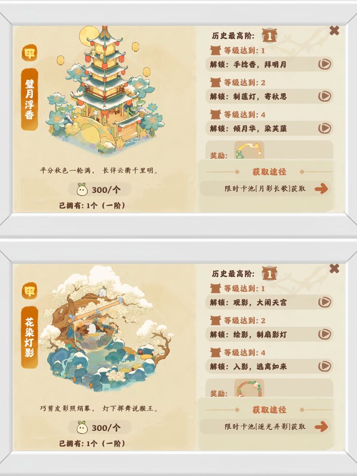 1:预测下月会从〔璧月浮香〕和〔花染灯影〕这两个建筑中的其中一个优先返场。