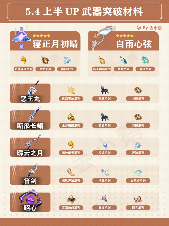 我是丢小鹅,为你带来【原神5.4】上半Up武器突破材料~