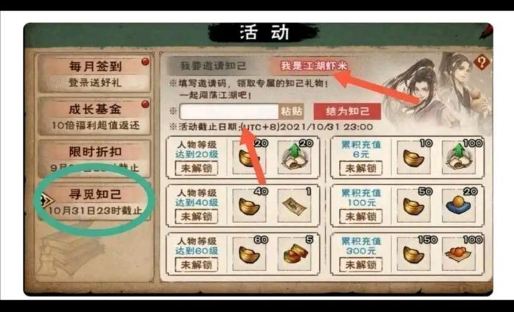 右上角点开活动,寻觅知己,然后点开我是小虾米,我的邀请码AFFDIU,可获得400元宝+马车票+8万阅历+120体力+100洗髓丹+20顺脉丹。附详细开局攻略。