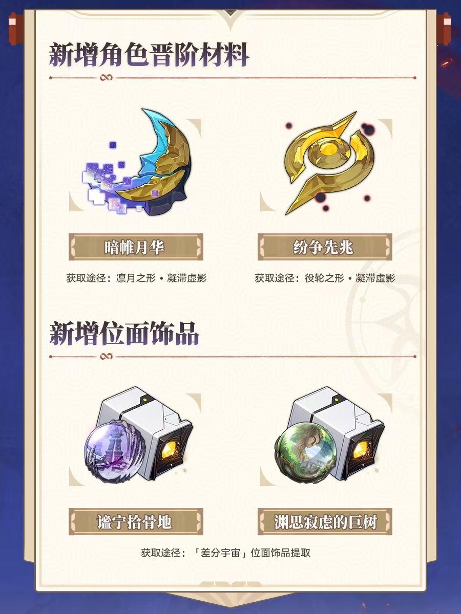 新增角色晋阶材料:暗帏月华金额纷争先兆