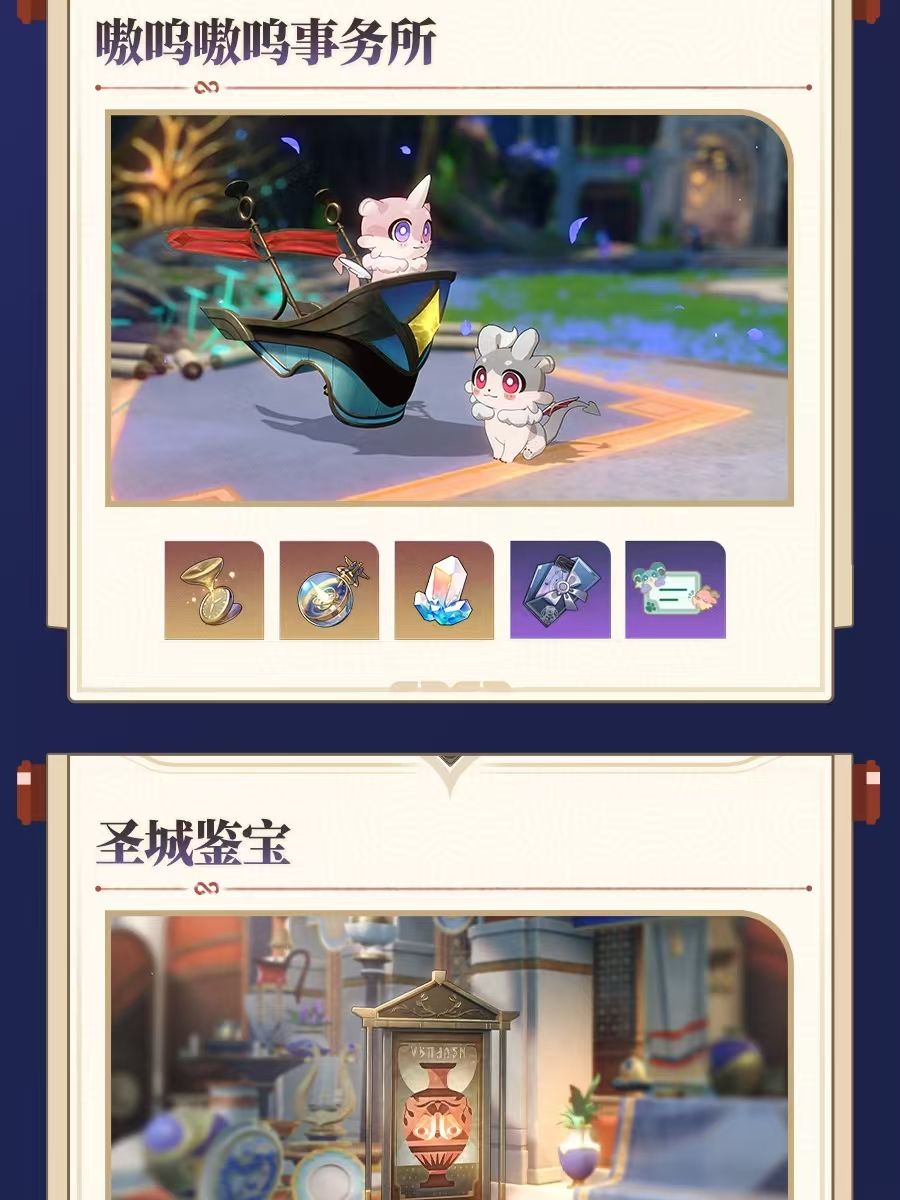 嗷呜嗷呜事务所、圣城鉴宝:星琼奖励、道具材料