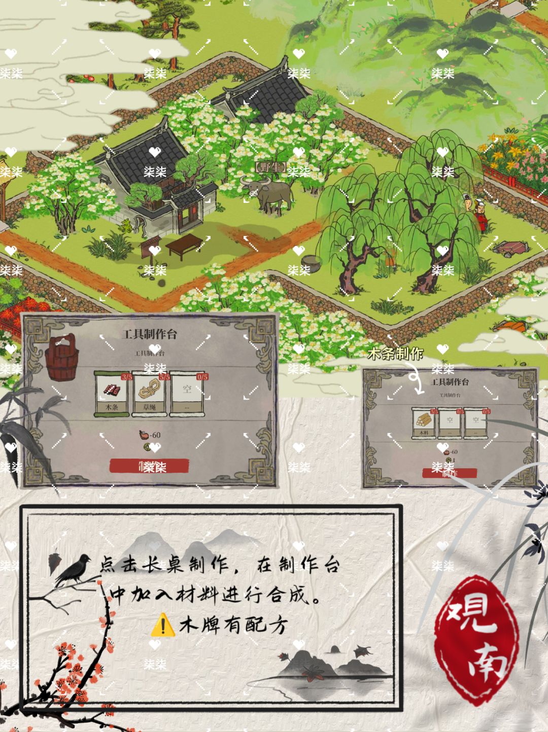 🍃1: 左边牌牌👉制作单,右边桌子👉操作台;木条、水桶的制作明细;