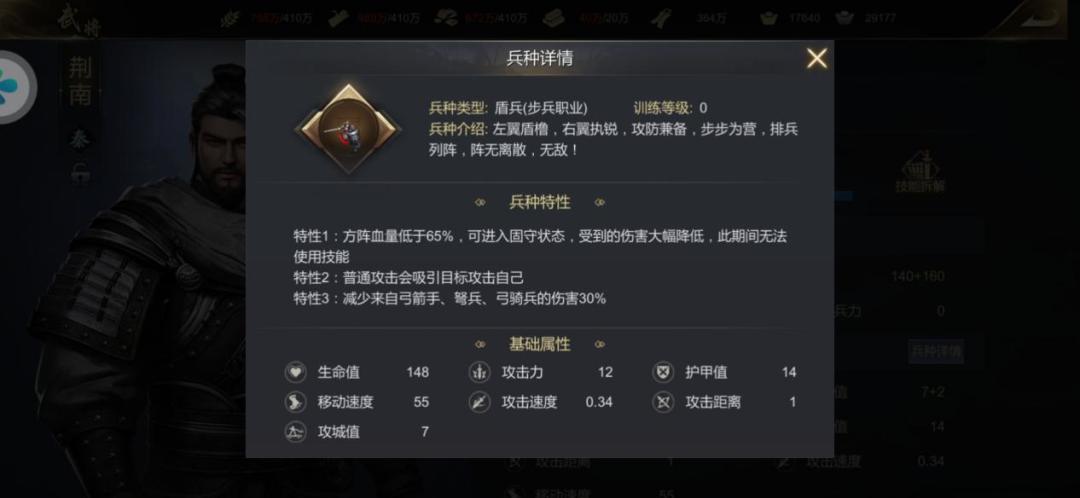 1. 盾兵:盾兵拥有对远程非器械兵种承受伤害减伤的特性,在面对以弓、弩组成的敌方单位时有显著优势,且自身生命值低于一定比例后更能大幅度减伤,普通攻击会吸引对方攻击,缺点在于自身灵活性比较差,容易被近战单位固定在原地刮痧致死。可以利用其特性在对面骑兵冲锋到我方后排之后,盾兵二次进场吸引骑兵转火攻击,或带有隐秘行动和埋伏等战略名仕技能绕道敌对后排进行扰乱。