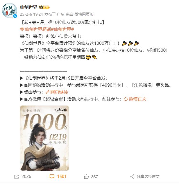 2月19日首发越来越近,《仙剑世界》受到的关注度越来越高。