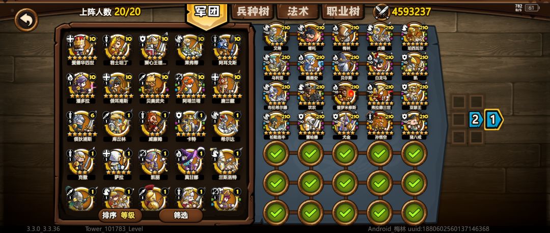 飞马我是带了5个。这个有一点要注意,就是飞马不能横着放,要竖着放。因为飞马在横着放的时候,他后面几个飞马会去切前排。我这里召唤飞马如果有配置,可换希尔达或者飞马弟都行,用飞马就起码四个上。几个骑兵是补一点前排输出,毕竟这个版本盾兵几乎没伤害。有河马克撒可以考虑不用。