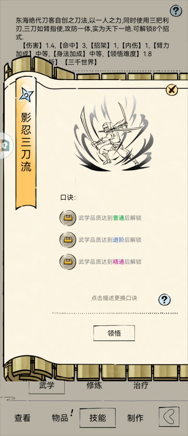 前言:三刀目前的设计确实谈不上成功,在门派武学领悟中是最低的一档,但并不是数值缺失,而是机制的不合理(别急着喷,慢慢看完,做合理讨论)