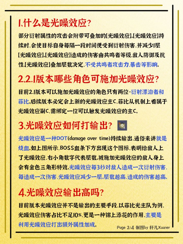 最新鸣潮2.1版本上线了光噪体系C菲比,由此打开了异常效应机制的大门,那么作为与QTE机制不同的新一代DOT机制,要如何在游戏中打出伤害呢?轩儿为大家整理了有关光噪效应的版本内容,方便各位萌新理解,本期笔记主要包含以下内容: