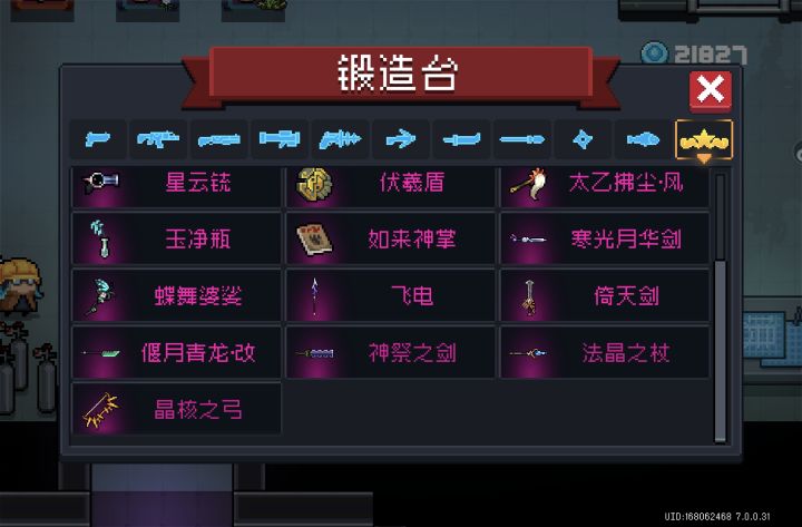 晶核之弓:跟倚天剑差不多的实力,满级后概率可叠加有概率一只怪射出三四个结晶块,成型较快,属于是乾坤弓的进阶