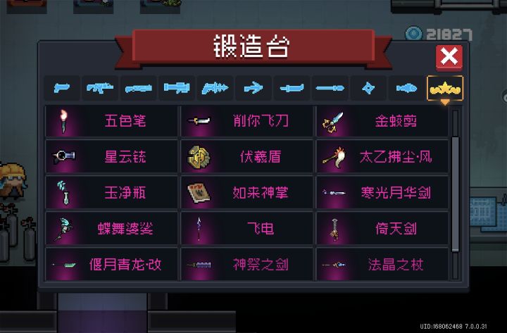 偃月青龙·改:t0中较低但不至于t0.5,特殊攻击与普攻交替触发的跳斩伤害高,且几乎全部角色拿了都有较好自保能力,攻速快范围大,且满级后打完特殊攻击有类似于号角的效果快速攒好下一次可惜上限略低于倚天剑和晶核之弓,上限与月华剑差不多,但无远程能力,因此略低于月华剑