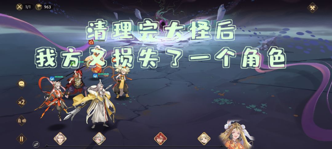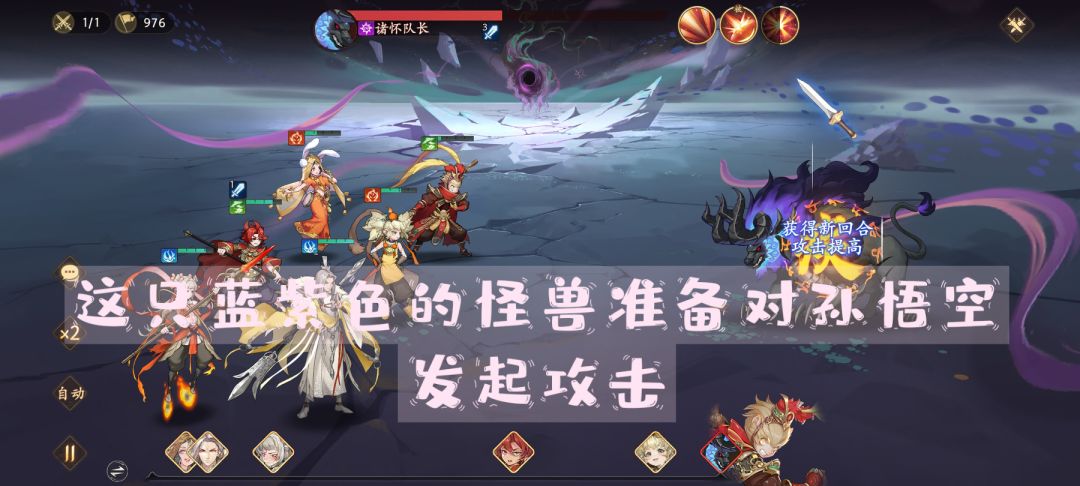 没想到第一排中的孙悟空被一只怪兽打败以后,实际上这只大怪的血量只有四分之一了,这说明我方还可以继续打败这只大怪。