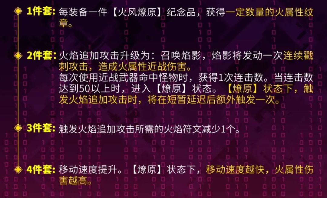》非常好的效果集机制伤害等于一体,三件套效果甚至直接沿用了45、50个火属性纹章的套装效果