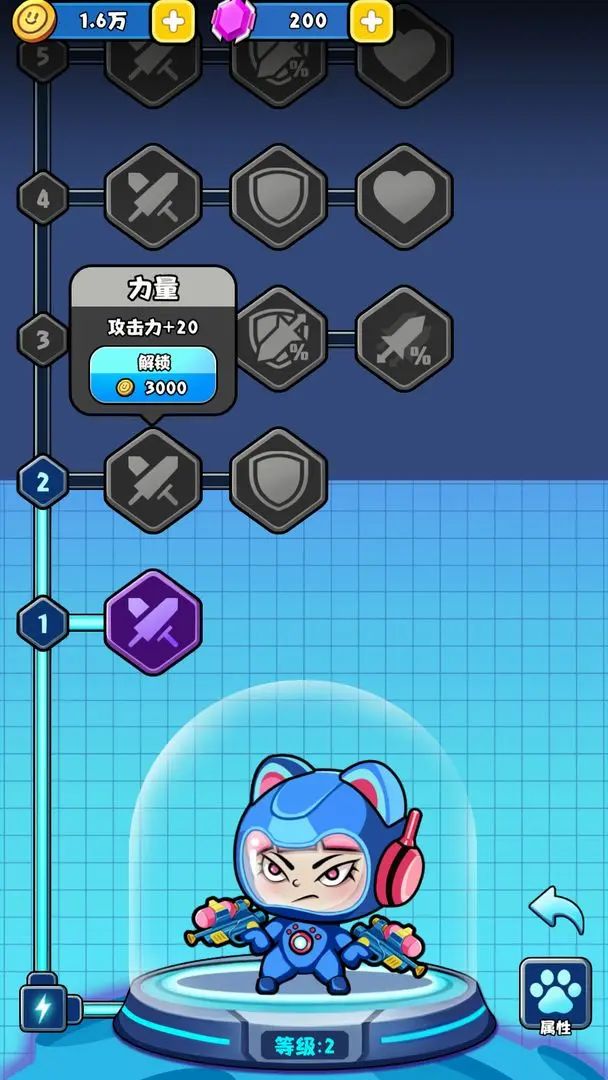 游戏介绍:《异境英雄》是一款太空题材的休闲割草类小游戏,游戏中玩家通过操作角色进行走位、升级,不断消灭蜂拥而来的怪物来推进关卡进行游戏。在游戏过程中,消灭怪物后会随机掉落经验球,吃掉经验球可以增加对应的经验值,当经验值达到一定的条件后会触发技能升级,不同的技能升级可以给角色带来不同的能力提升,可以更有效的消灭或躲避怪物。在玩家持续升级杀怪过程中,会遇到“敌群来袭”和“ 首领来袭”两个事件,敌群来袭时会突然产生一大波的怪物,急速冲向玩家。当首领来袭时,会出现一个围栏以及一个巨型怪物,玩家只能在围栏区域内与首领缠斗,当首领被消灭后,围栏消失,逐渐地怪物们会从外围继续冲向玩家。当玩家在指定时间内保持存活状态,则本关卡胜利,玩家死亡则失败。