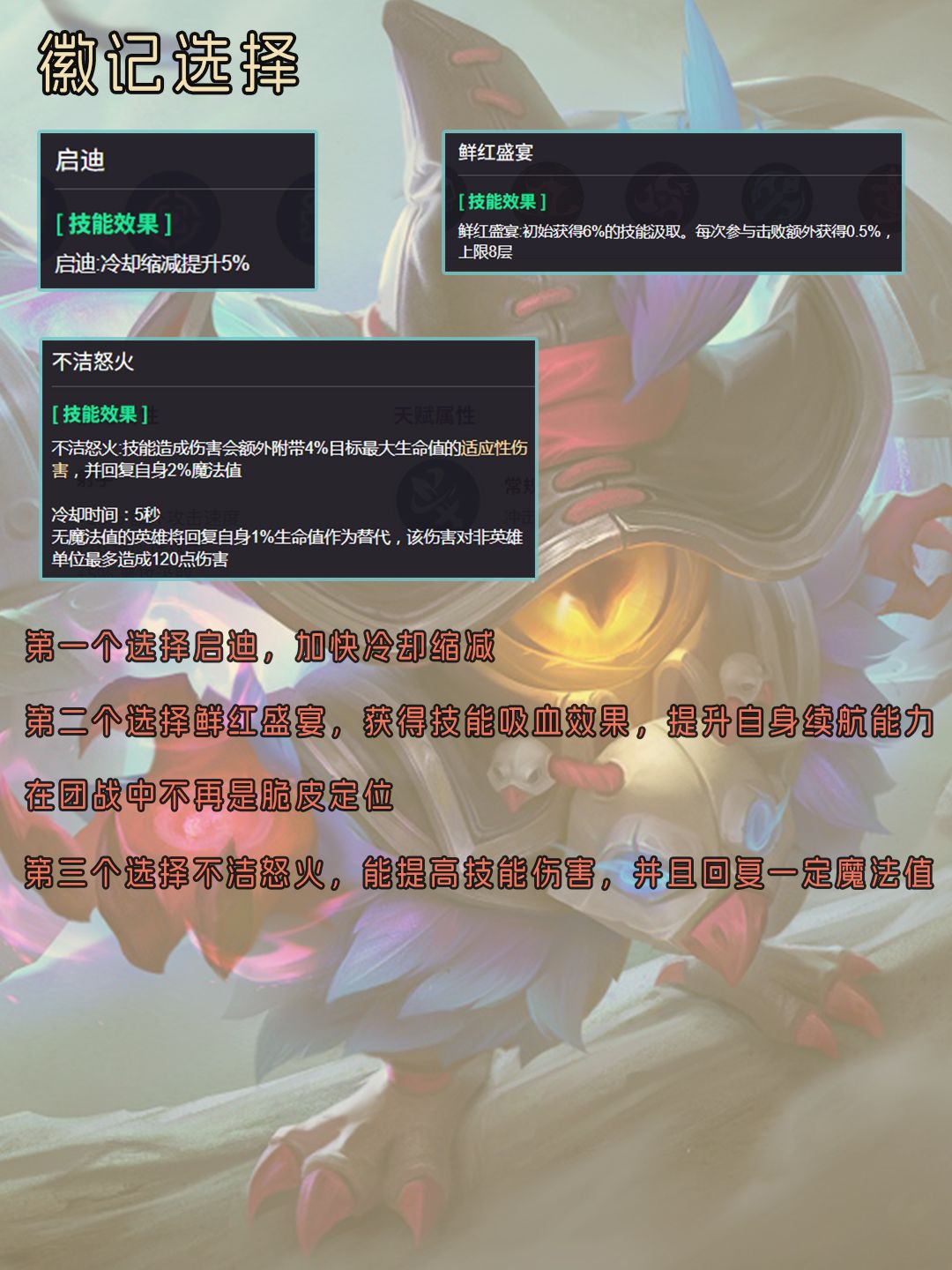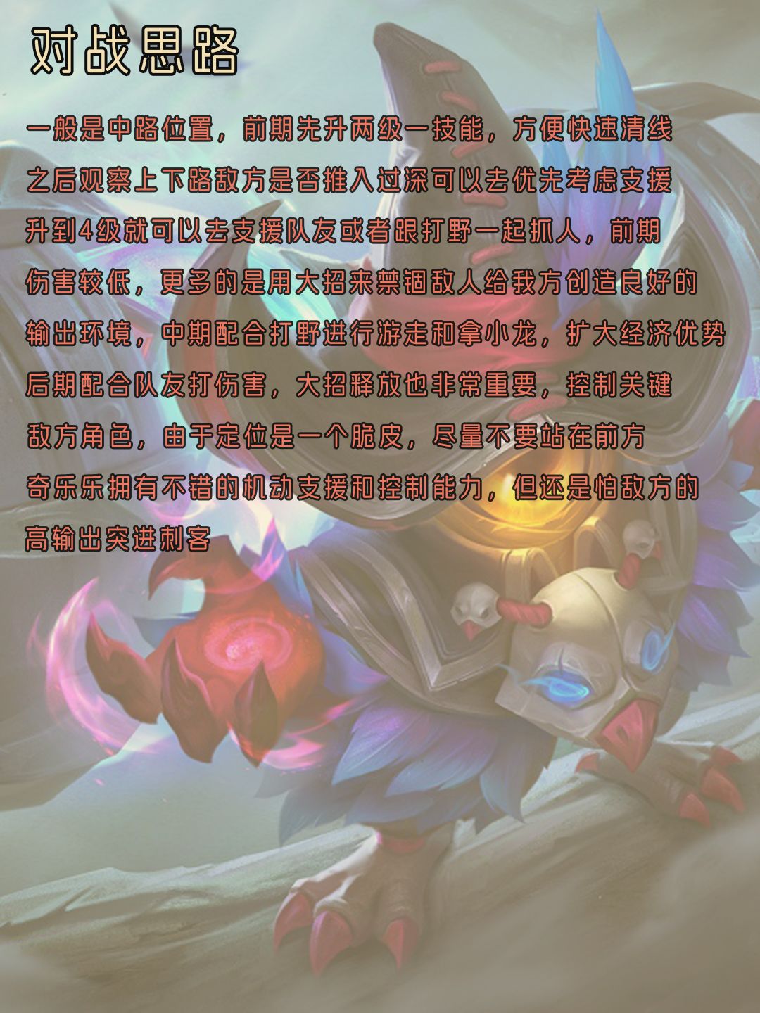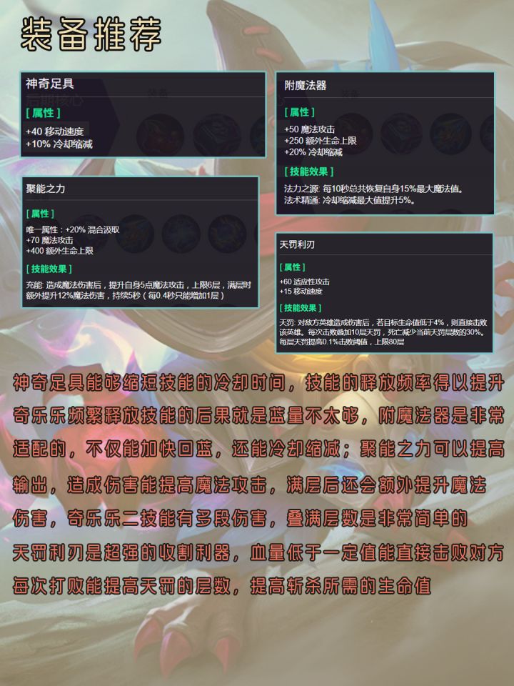 给大家带来奇乐乐的一图流攻略,包括技能解析,装备选择,徽记推荐和对战思路