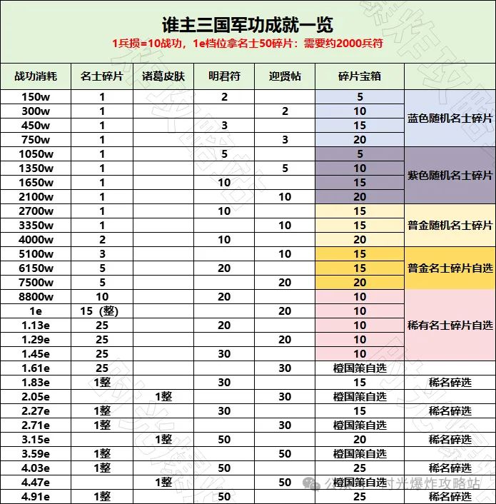注:表格各项数据由公众号时光爆炸攻略站提供