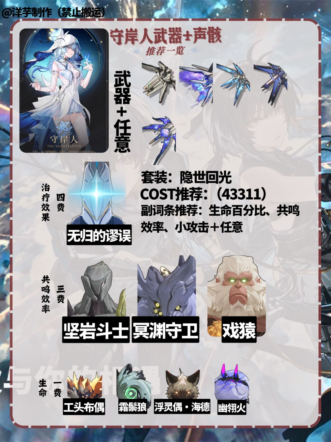 光主的声骸推荐、武器推荐及其队友的配置来咯来了!希望各位能够喜欢!