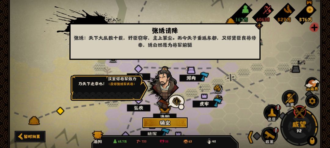 9张秀灭亡。点两次政策,同时收名臣,被拒绝了可以大退,再登一次。(想要刷第5个名臣的,这里可以注意一下)