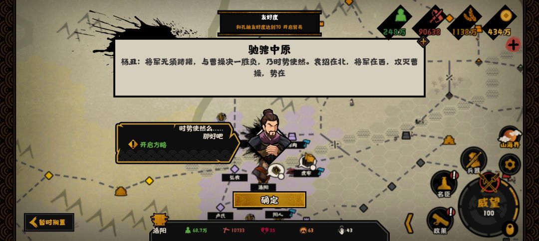 外加剧情中可以获得洛阳,平均2-3个平原可以建造商业产业,触发苌弘太守技能。