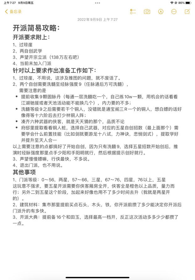 我简单搜了下,发现官群和论坛上都没有开派的攻略,献丑写下,不喜勿喷。