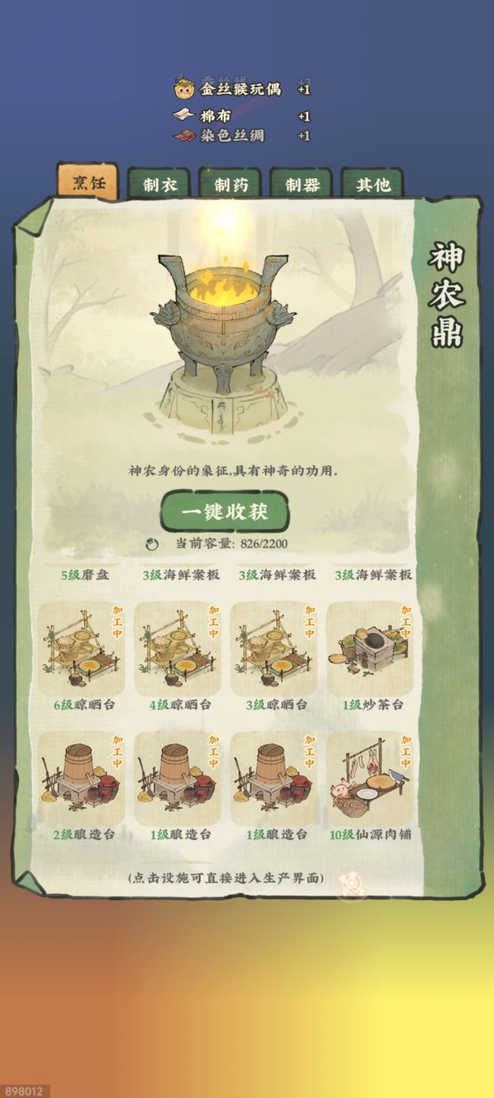 我刚刚做多了一个做茶的台子 可是神农鼎还是只显示一个台 这是卡bug了吗?