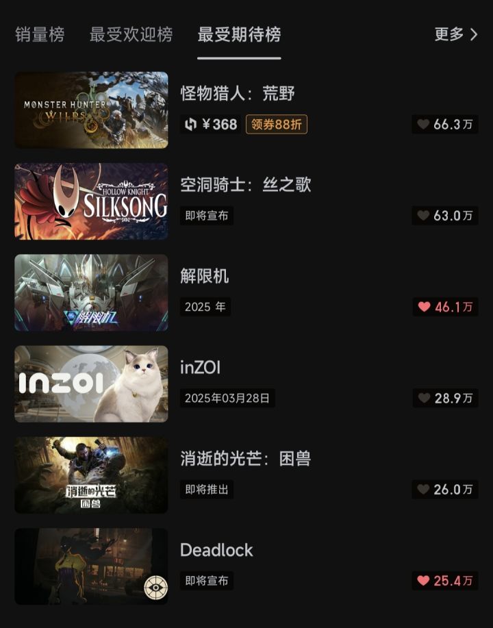 解限机最受期待榜前三!
