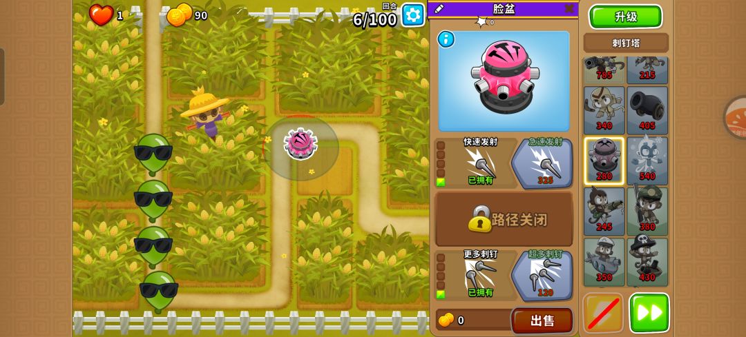1,在左上角放刺钉塔,升101,凭借地形拿下开局