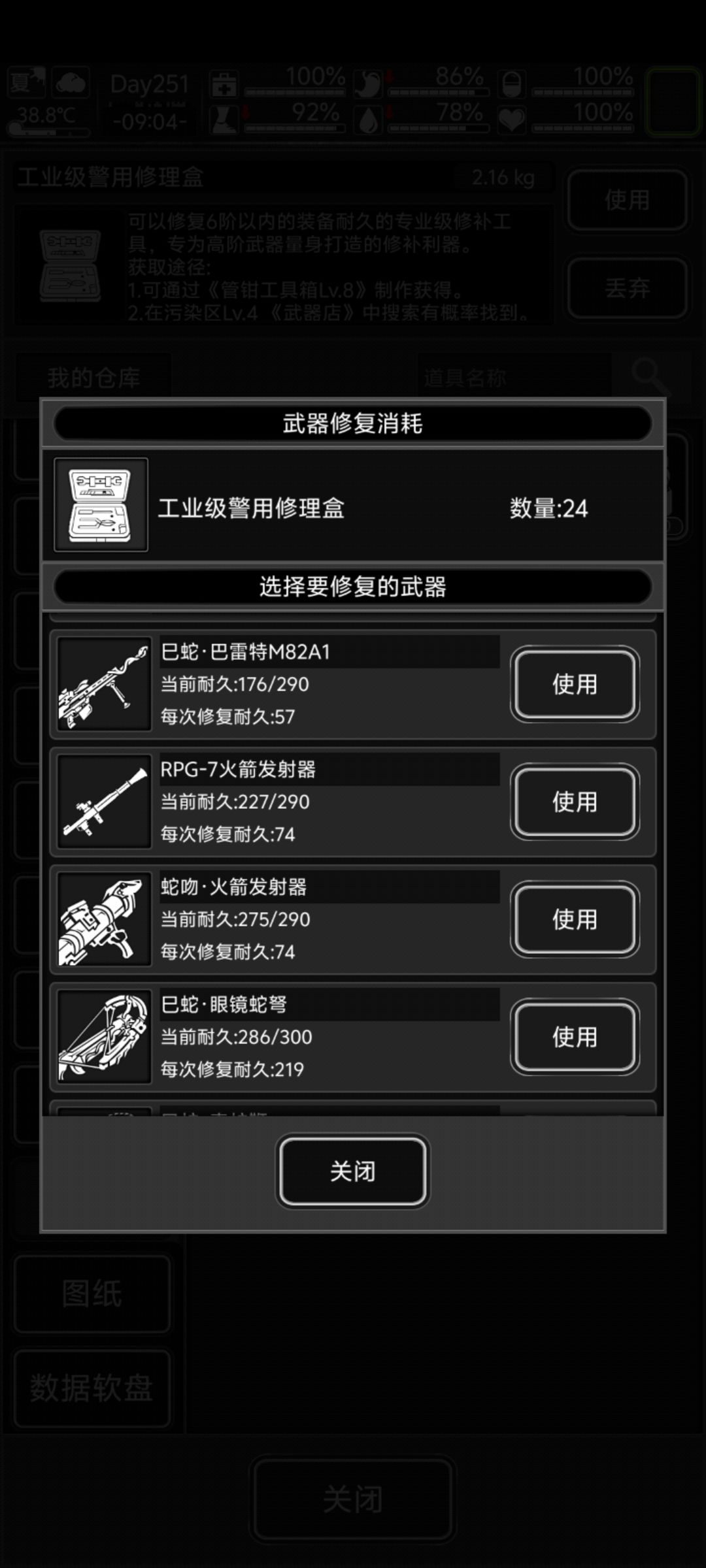 这个在炼狱里和原版rpg不一样,原版rpg是3*5的伤害范围,打尸潮我还是非常爱用的,但是这个火箭筒只有3*3的伤害范围,所以对我来说,基本是没用的。维修也和rpg一样,6修回74,7修回290回满