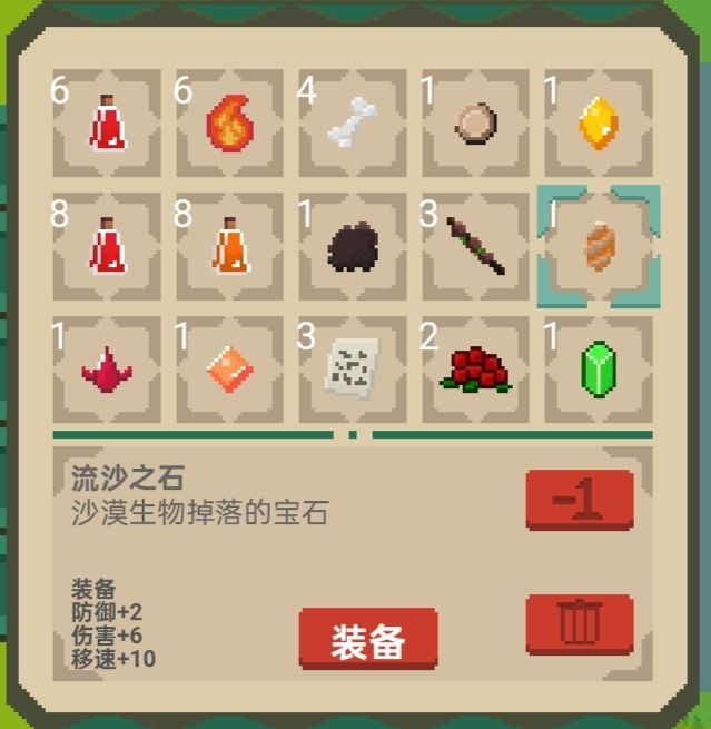 5.自然之石:防4伤10速10;树王boss掉落;向移动方向劈出3道绿色的剑刃;第二个装备;