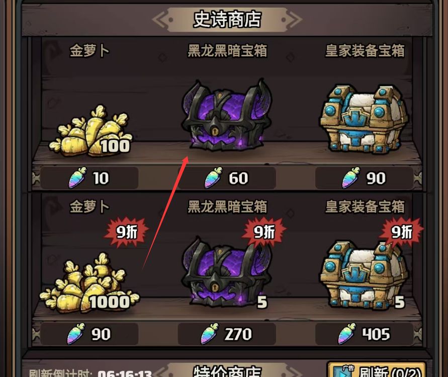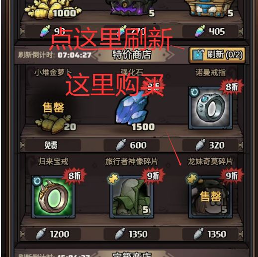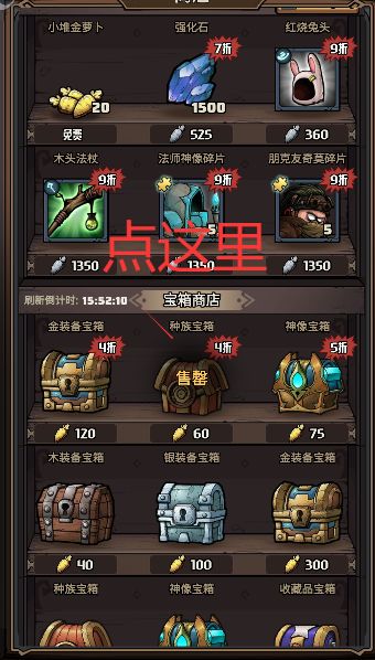 (1)商店每日三次刷新,商店内的免费金萝卜即使领取,普通奇莫角色碎片和打折种族宝箱建议购买;