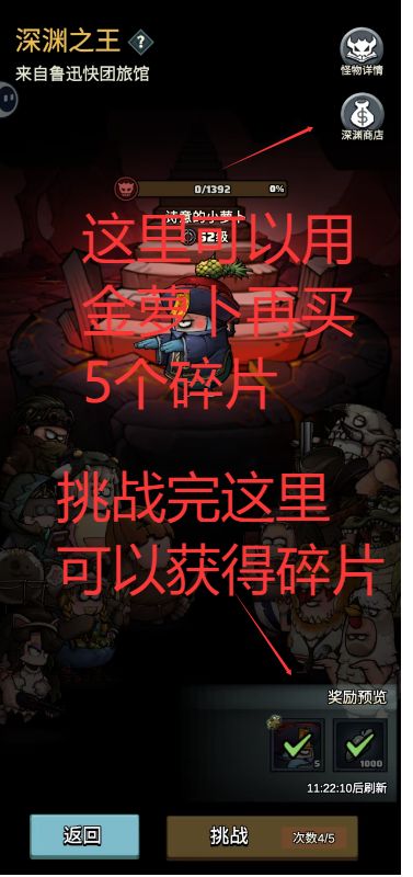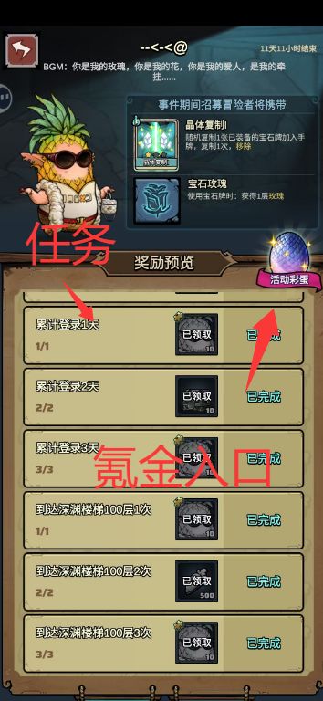 (3) 每天1次深渊之塔(产出240金萝卜、3个金装备宝箱、4个收藏品宝箱)