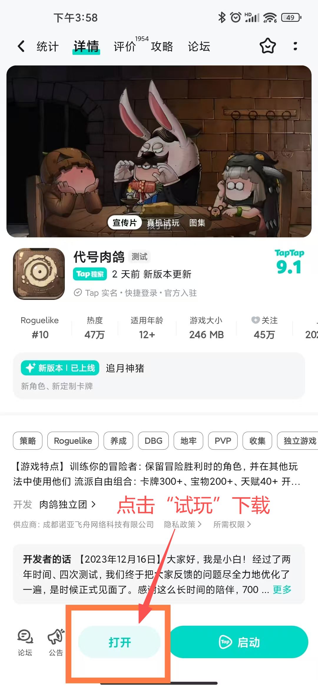 如果你游戏闪退、卡顿了,那么很可能是在TAP上是云游戏,正确的方式是点击游戏左下方“试玩”进行下载![[表情_斜眼笑]](https://img.tapimg.com/market/images/d1b1dcc88719f6c9a639728cde152c4b.png)